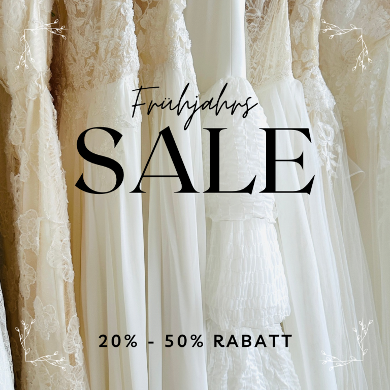 Ab sofort bis zum 27.04.26 habt ihr die Möglichkeit euch einen Rabatt von 20% auf Musterkleider zu sichern. Bis zu 50% Rabatt erhaltet ihr sogar auf ausgewählte Sale- Kleider!